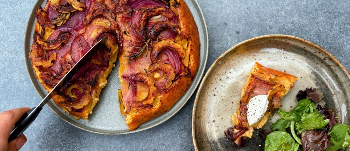 Upside-Down Savory Polenta Tart adds vegetarian flair