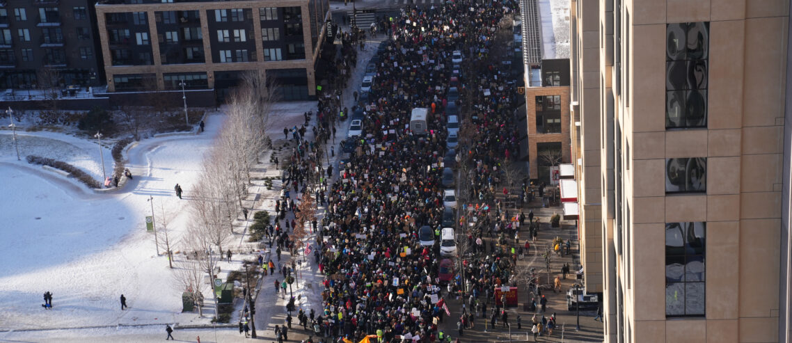 Thousands march through Minneapolis, swarm Target Center demanding ICE removal from Minnesota
